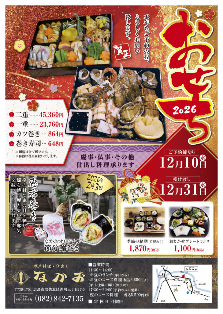 瀬戸料理・仕出し なかおでは、2026年度おせち料理のご予約を受付しております。